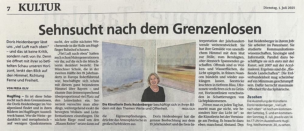Artikel im Münchner Merkur zur Ausstellung im Ausstellwerk im Juli 2025 in Huglfing